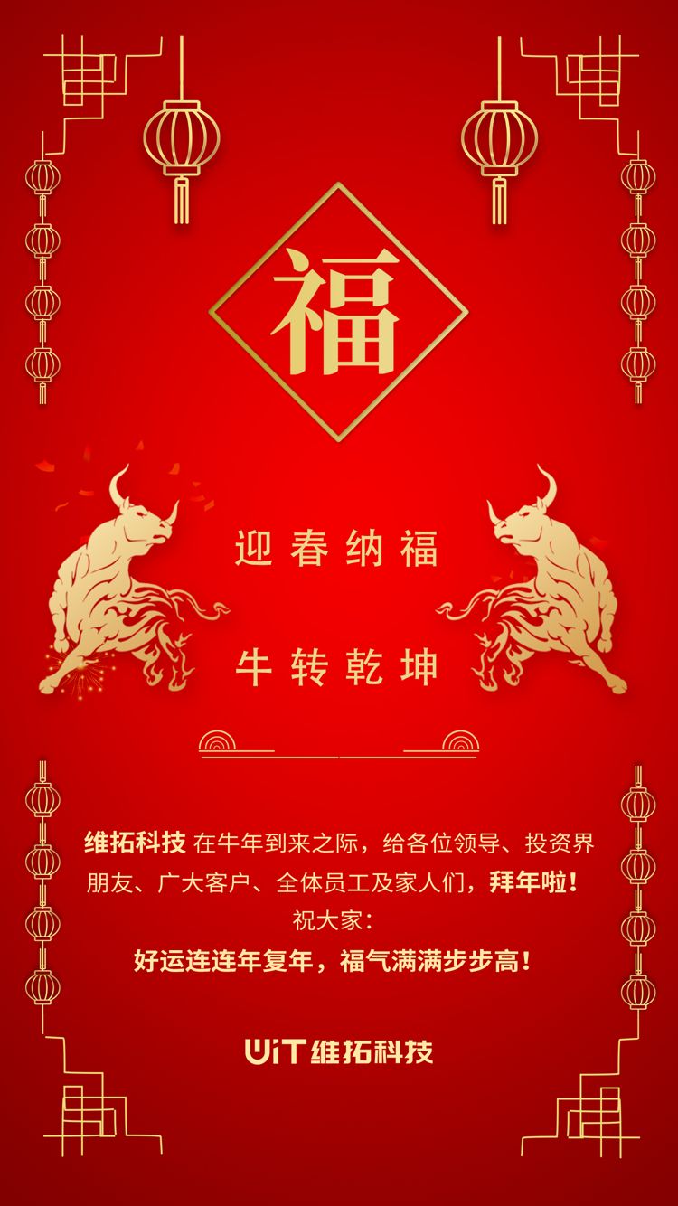 维拓科技在牛年到来之际,给各界领导、广大客户、投资界朋友、全体员工及家人们,拜年啦!